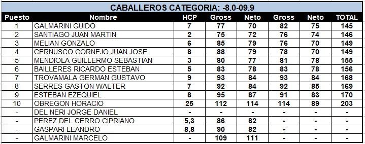 - CABALLEROS CATEGORIA: -8.0-09.9